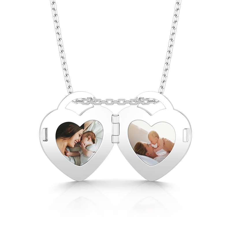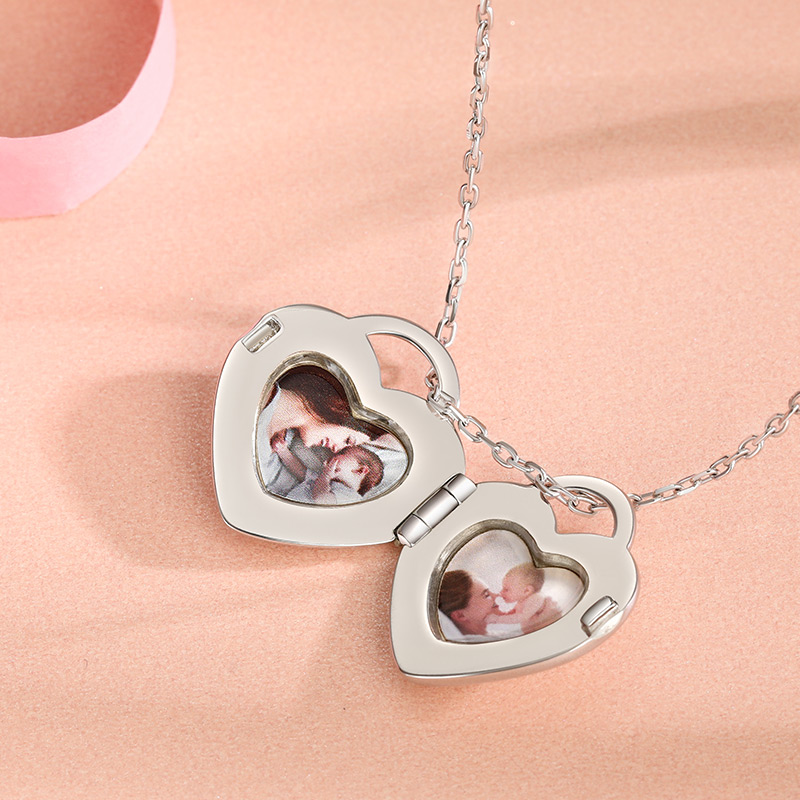 This locket necklace is a special gift for mothers with custom photo design. It holds two photos and has prints of a child's hands and feet on one side. The other side has a crown shape. This silver necklace reminds us of the love between a mother and her child. The chain is smooth and easy to wear. The locket keeps the photos safe. Whether for a special day or every day, this necklace is a treasure to cherish. It shows how much a mother loves her child and how special the child is to her.