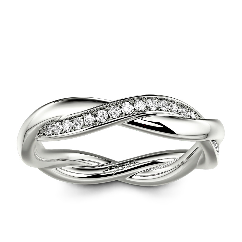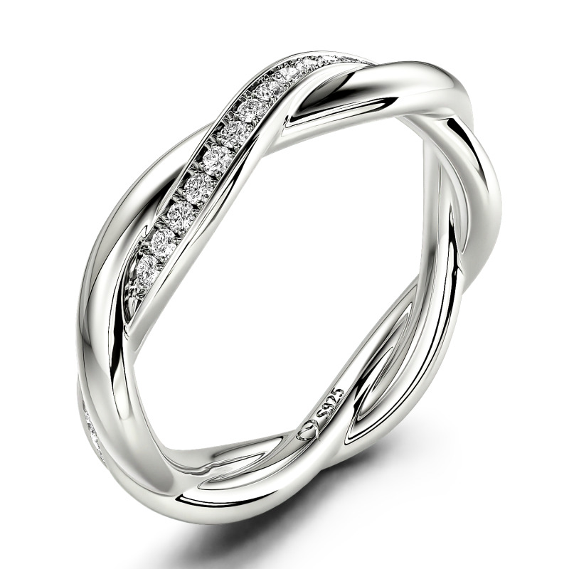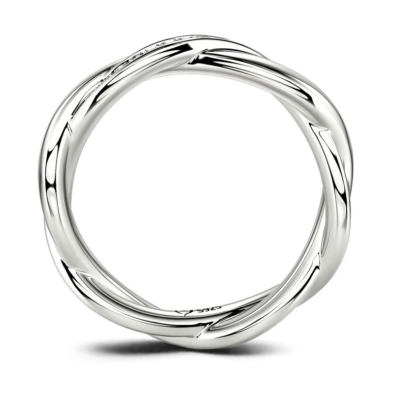 A twisted women wedding ring that has two bands intertwined in a vine-like fashion. This beautiful and delicate wedding ring is formed by two intertwining bands, one of micropave set stones and one of solid sterling silver for an elegant statement, you can follow your budget to custom your perfect wedding rings at Jeulia.