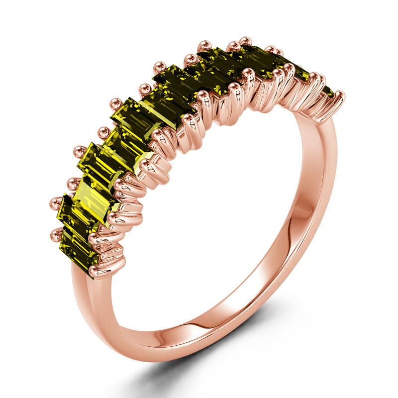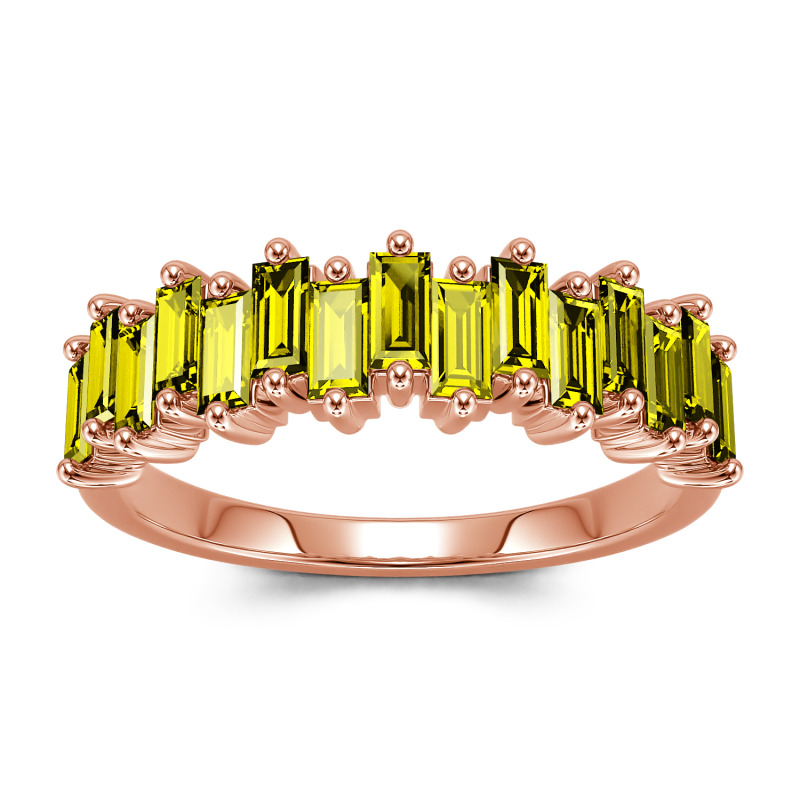 Promise to love, honor and cherish her with this charming moissanite wedding band. An alternating wave of emerald-cut stones dazzle along one third of the band for a modern and lustrous look. Perfect for all-day wear, the inside of the shank is rounded for comfort. On your wedding day or wedding anniversary, present her with a band that represents an eternity of love.