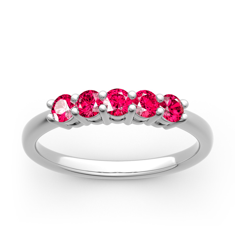 Jeulia Five Stone Round Cut Sterling Silver Band