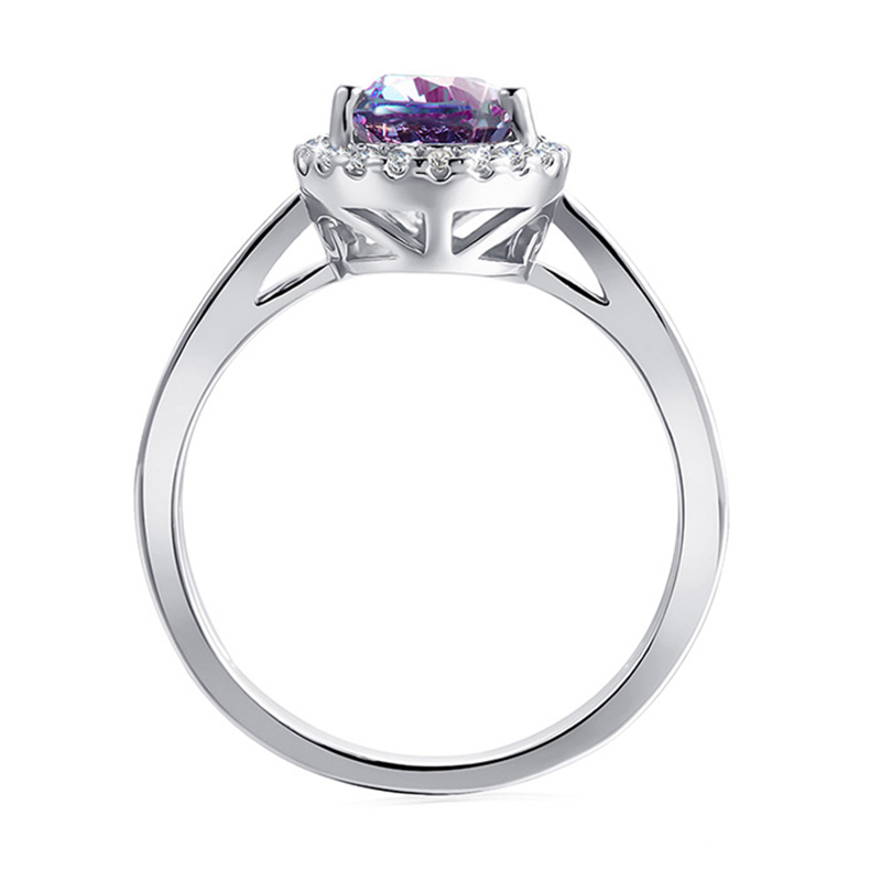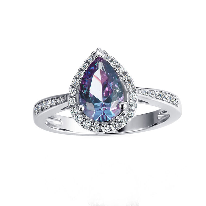 Jeulia Halo Pear Alexandrite Ring Channel Setting Sterling Silver