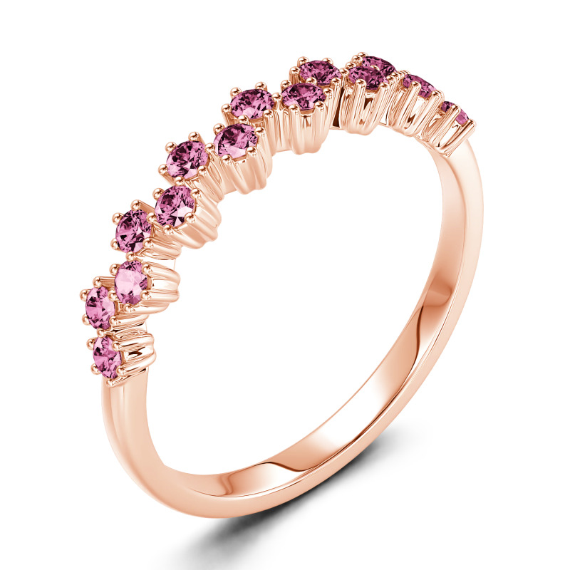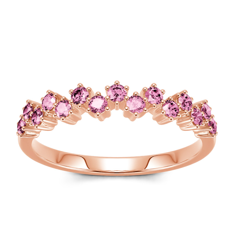 Like your love, this moissanite anniversary band is a classic that never goes out of style. Stunning prong-set stones in a sculptural alternating pattern appear to float above the finger for an effortless, unique look. Its simple style is fit for every lady. You can wear it separately or stack it with other rings. Treat yourself with this piece.