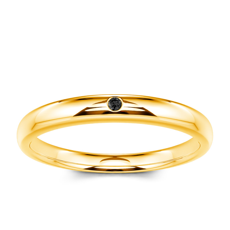 This classic moissanite band is a symbol of enduring love. Timeless and traditional, it features an alluring addition of a round-cut stone set into its band. The tone imbues this piece with a contemporary resonance. Dedicatedly created, the ring serves as a visual reminder of a loved one, making a natural choice for a wedding ring.