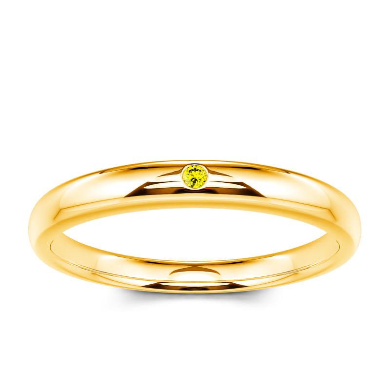 This classic moissanite band is a symbol of enduring love. Timeless and traditional, it features an alluring addition of a round-cut stone set into its band. The tone imbues this piece with a contemporary resonance. Dedicatedly created, the ring serves as a visual reminder of a loved one, making a natural choice for a wedding ring.