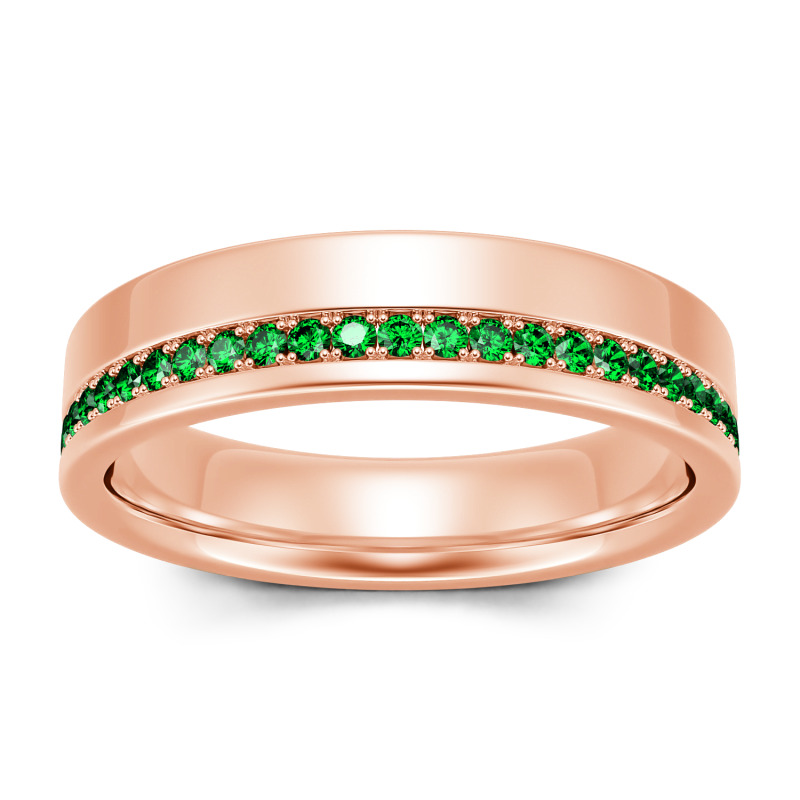 On your anniversary or wedding day, honor the man you love with a ring worthy of his affections. This unique design features a ribbon of petite channel-set stones along the edge of the modern polished look. Buffed to a brilliant shine, this ring is an elegant symbol of your marriage commitment.