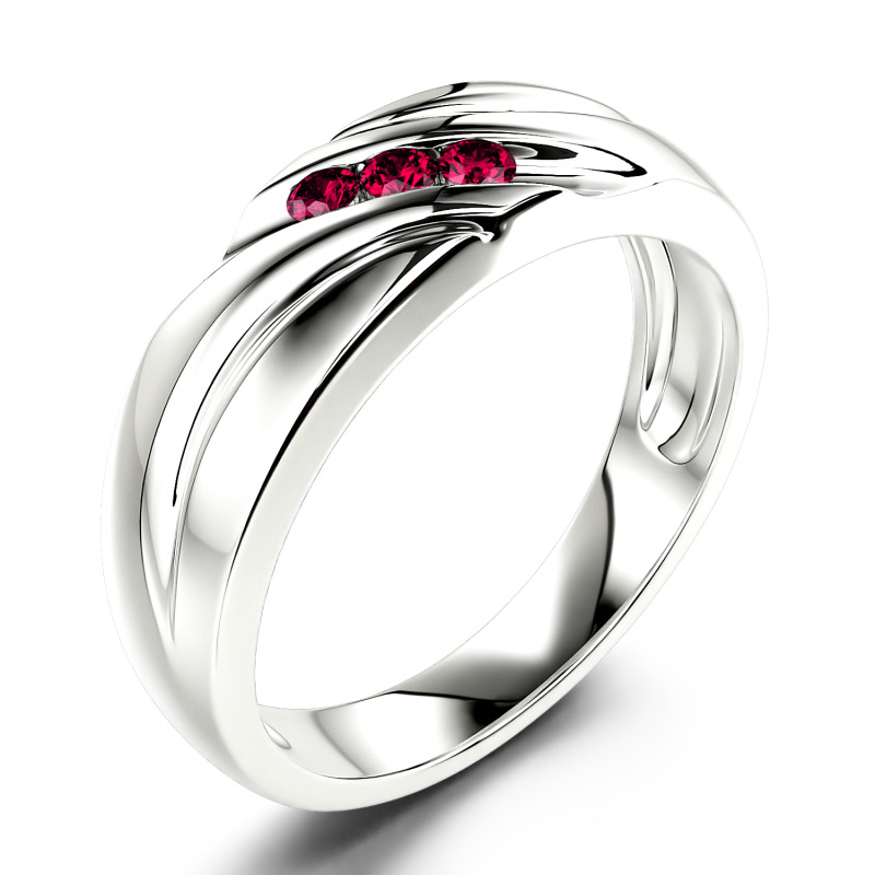 Jeulia 10K/14K/18K Gold Platinum Round Cut Three Stone Men's Band