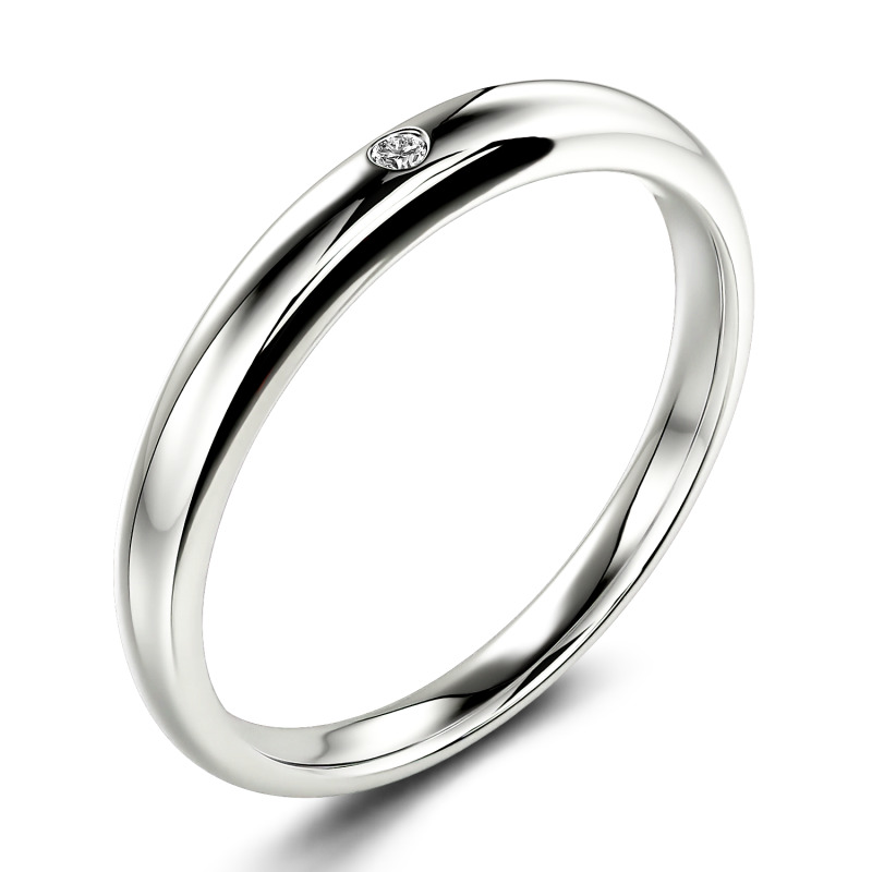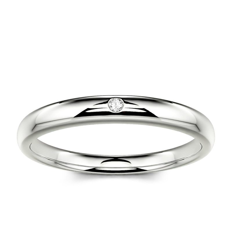 This classic moissanite band is a symbol of enduring love. Timeless and traditional, it features an alluring addition of a round-cut stone set into its band. The tone imbues this piece with a contemporary resonance. Dedicatedly created, the ring serves as a visual reminder of a loved one, making a natural choice for a wedding ring.