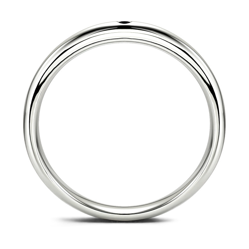 This classic moissanite band is a symbol of enduring love. Timeless and traditional, it features an alluring addition of a round-cut stone set into its band. The tone imbues this piece with a contemporary resonance. Dedicatedly created, the ring serves as a visual reminder of a loved one, making a natural choice for a wedding ring.