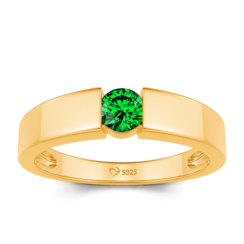 Jeulia Simple Round Cut Men Engagement Ring Sterling Silver
