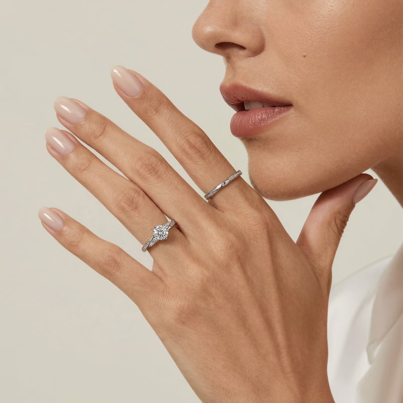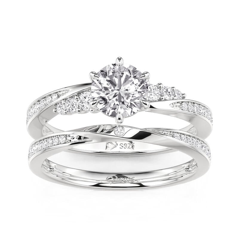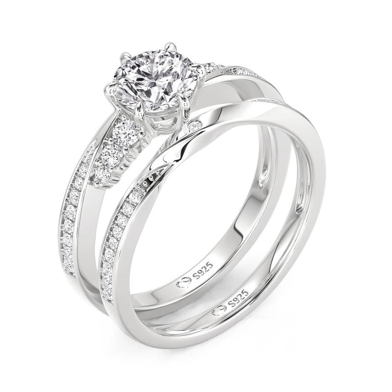 Define your forever with the Jeulia Simple Twist Round Cut Engagement Ring Set. This elegant sterling silver duo features a brilliant round-cut center stone held in a classic six-prong setting, framed by graceful bypass-style bands that create a delicate twisting silhouette. Each band is meticulously pavé-set with shimmering accents, adding a fluid, continuous sparkle that symbolizes two lives seamlessly intertwining. With its refined proportions and timeless design, this wedding ring set offers a sophisticated sparkle that transitions perfectly from the proposal to the wedding day. Whether worn together for a high-impact look or individually for a touch of minimalist luxury, this bridal set serves as a stunning tribute to an enduring promise.