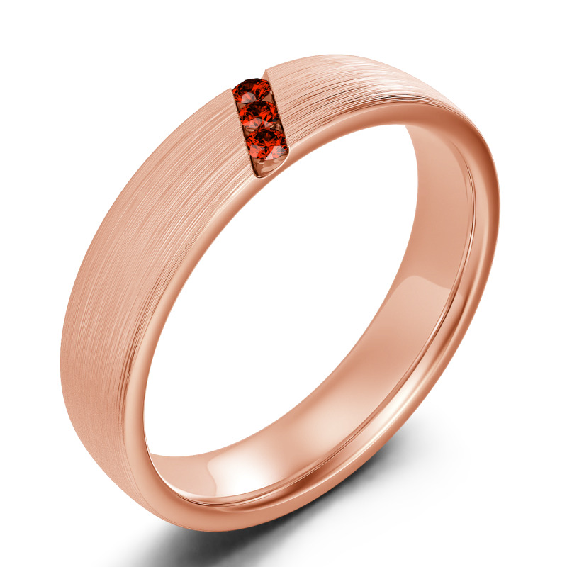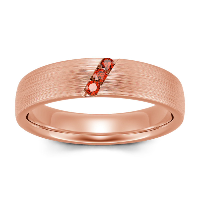 He'll appreciate the sleek design of this moissanite wedding band. A striking diagonal line of stones creates a unique, eye-catching design in this matte-brushed ring. The inside of the shank is rounded for comfortable wear. Buffed to a brilliant luster, this comfort-fit wedding band seals your vows in style.