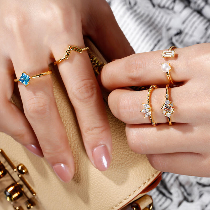 Jeulia Asymmetric Cluster Sterling Silver Ring