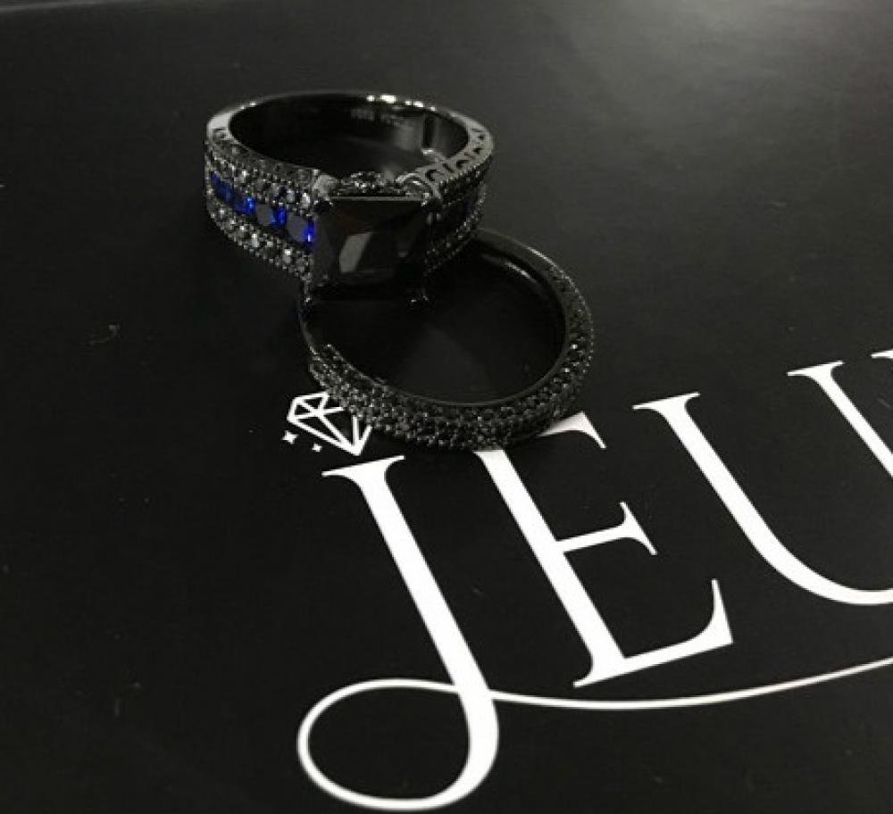 Jeulia Black Vintage Princess Cut Sterling Silver Ring Set