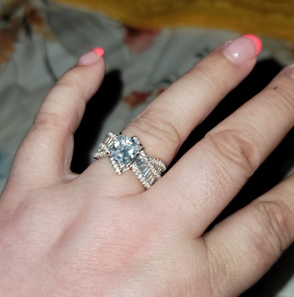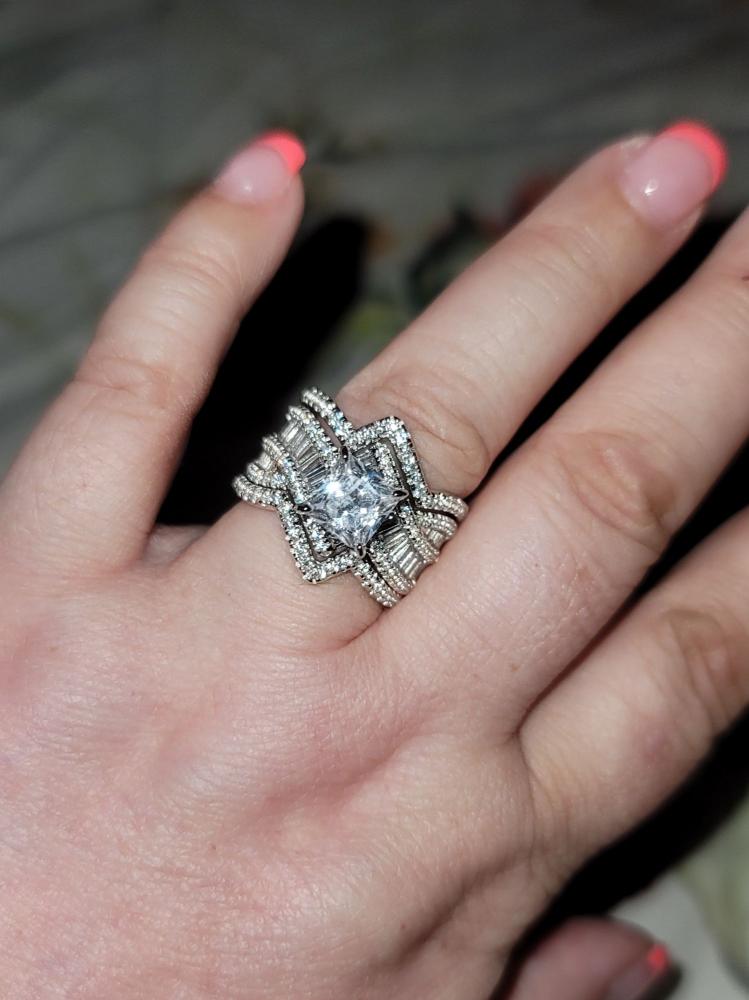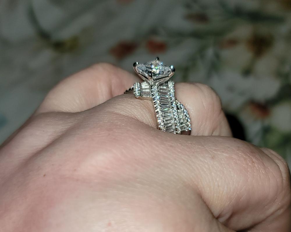 Jeulia Bypass Princess Cut Enhancer Sterling Silver Ring
