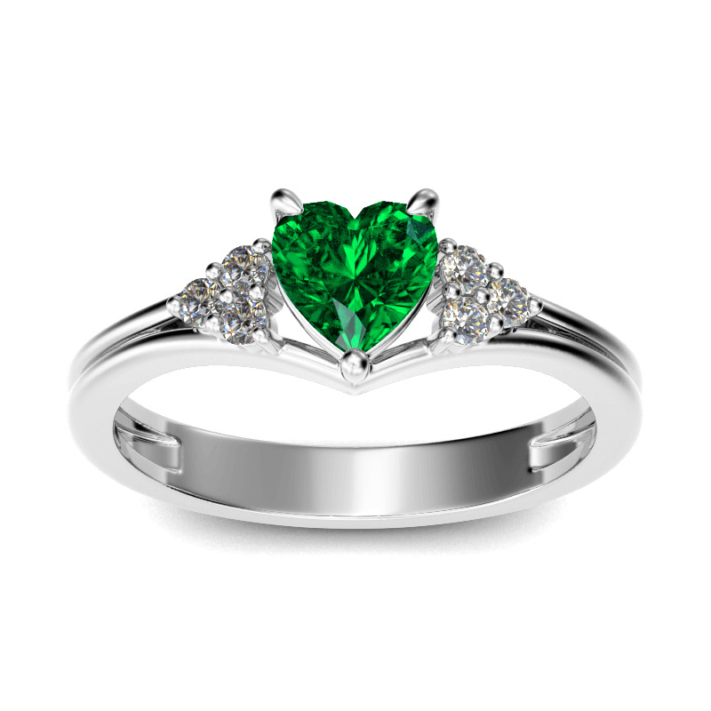Mark the beginning of your lifetime together with this lovely engagement ring. This exquisite style features a sparkling heart-shaped center stone flanked by smaller round stones. This engagement ring is a symbol of faithfulness and everlasting love. With multiple options for personalization, this beautiful style is a perfect gift for any lady or the perfect reason to spoil yourself!