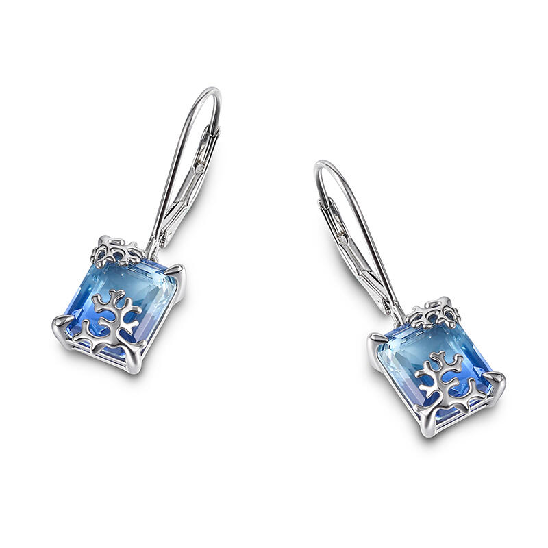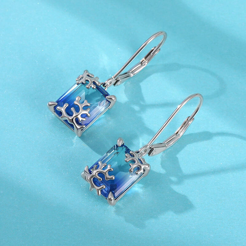 The coral evokes memories of your favorite days at the beach as well as evenings beneath the celestial sky. Created in sterling silver, each earring features a brilliant emerald-cut stone at the center, while two corals dotted on the center stone. It looks like a painting that coral growing in the fascinating underwater world. If you are looking for jewelry that can catch up with the jewelry trend, then add this piece to your jewelry box.