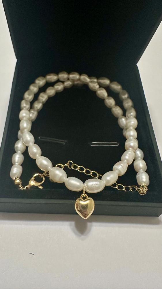 This stunning piece features a full circle of lustrous white pearls, delicately strung together to create a captivating masterpiece. Adorning this necklace is a beautifully crafted heart-shaped pendant, adding a touch of romance and sentiment. Embrace the allure of pearls, renowned for their natural beauty and sophistication. Each pearl represents purity and grace, reflecting the wearer's inner radiance. With its flawless design and impeccable craftsmanship, this necklace is a testament to the finest quality and attention to detail. Indulge yourself or surprise a loved one with this extraordinary pearl necklace.