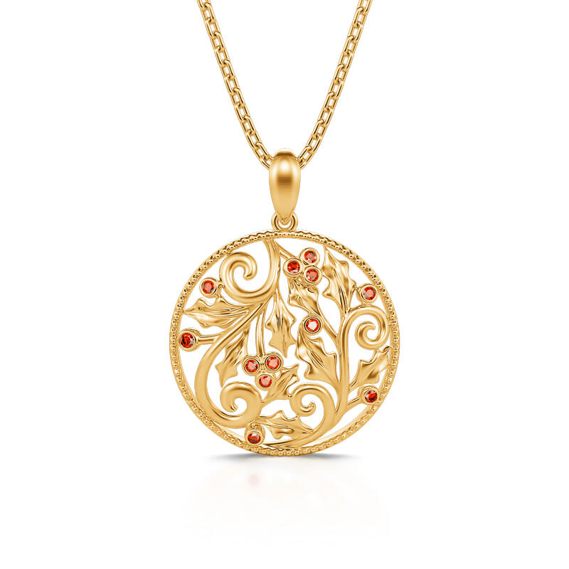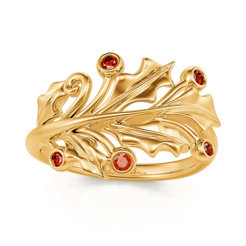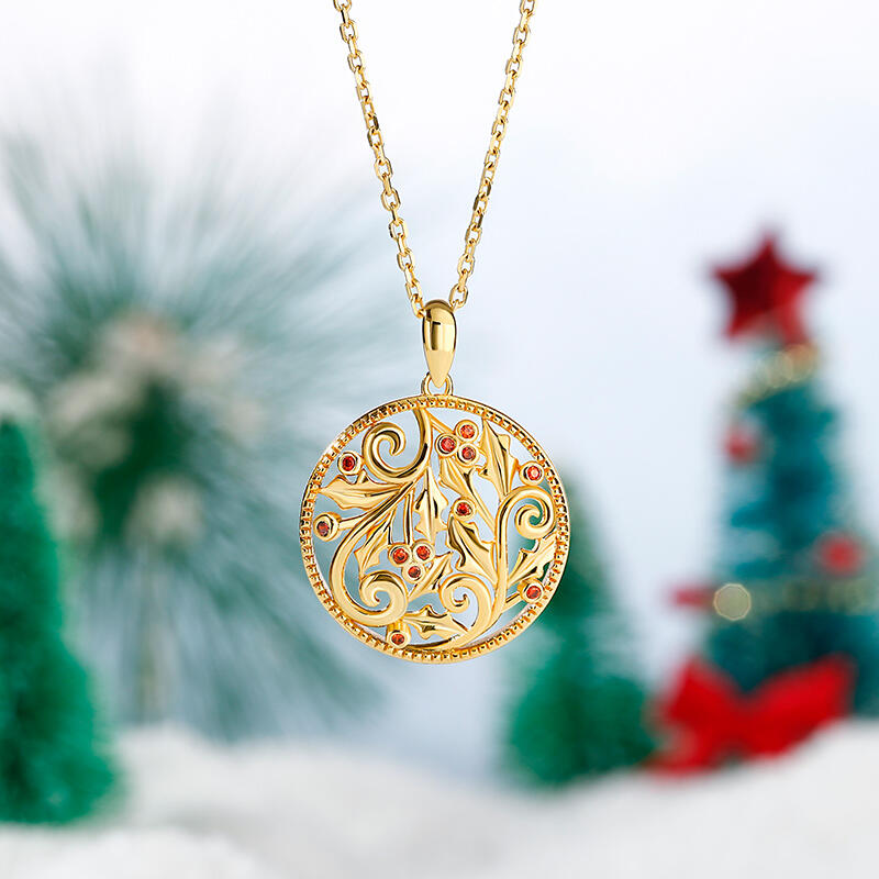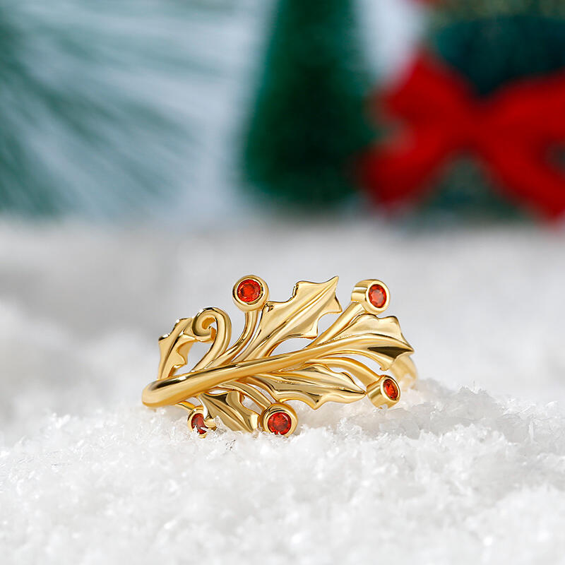Mistletoe is widely used as a Christmas ornament and "kissing under the mistletoe" is a custom not forgotten. So "What do we get if we kiss before the mistletoe?" A Christmas tradition; a belief to be the seed of love that delivers a promise of longevity and everlasting bliss. Beautifully handcrafted in gold-tone sterling silver, this set features beautiful leaves and sparkling red stones as berries of the mistletoe. Surprise her with this mistletoe set on special days!