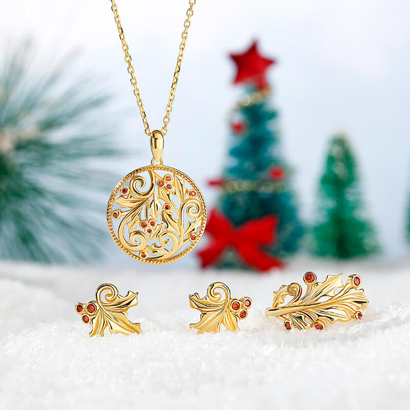 Jeulia "Everlasting Mistletoe" Gold Tone Sterling Silver Jewelry Set