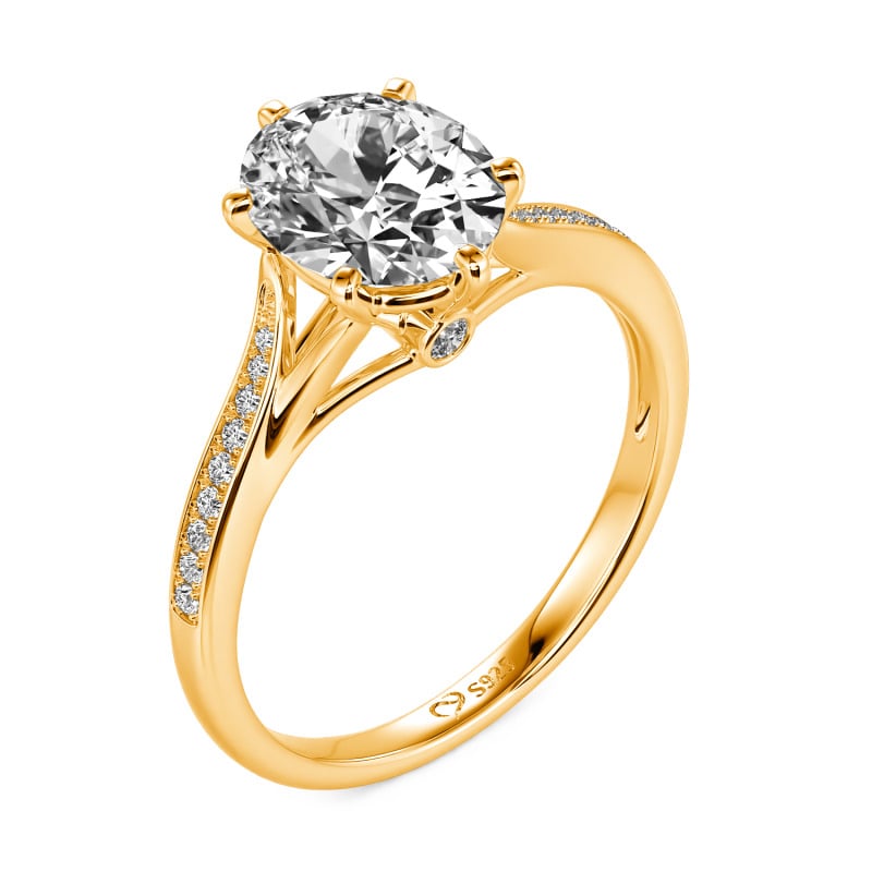 "Heart of the Spring"custom oval engagement ring with twist band design, crafted in pristine 925 sterling silver, resembles a spring gushing in springtime and carries a vibrant message of love. At the center of the engagement ring is a sparkling oval-cut main stone, symbolizing the eternity and steadfastness of love. On both sides of the ring arm, a row of small graduated stones, like splashes of water, gently hold up the main stone, as if spring water nourishes the blooming flowers, symbolizing the nourishment and growth of love. This custom oval engagement ring can be personalized with the color of the main stone and the color of the metal, allowing you to create a unique love token to witness the love story between you and your beloved as gorgeous as a spring day.