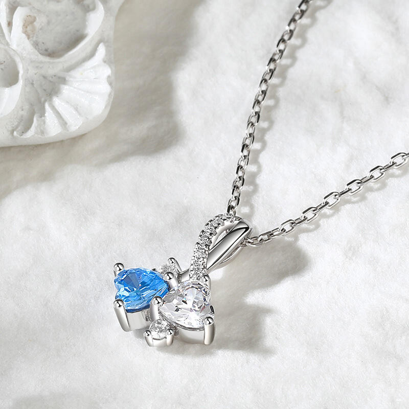 This necklace is uniquely charming and exudes a hauntingly beautiful vibe. Two heart-shaped stones are spelled together, one blue and one white, representing purity and serenity, as well as far-reaching thoughts and blessings. The sterling silver texture of the necklace shows nobility and elegance, adding unique charm and grace to you. Wearing this necklace, it is as if you can feel the love and tender care, let it witness the beauty of your years and frame the precious memories in your heart.