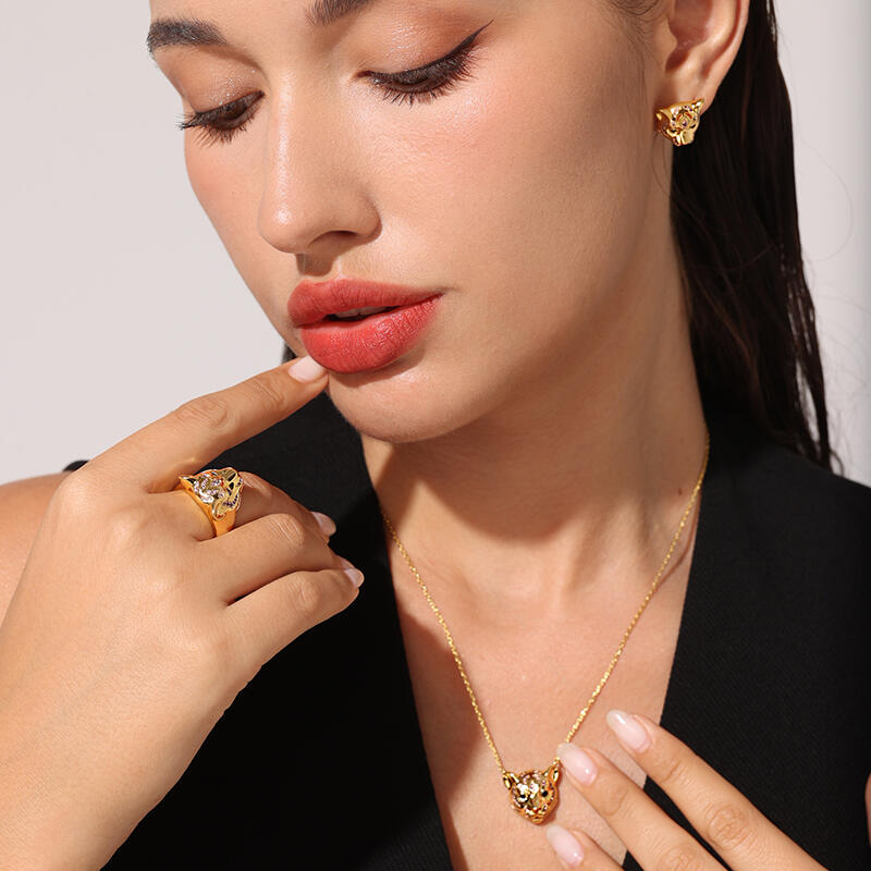 Jeulia "King of the Jungle" Tiger Sterling Silver Jewelry Set