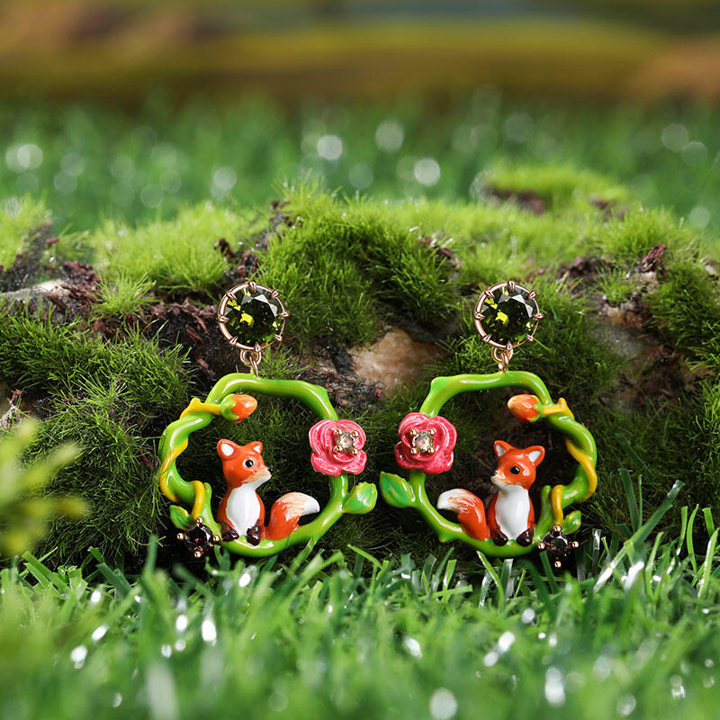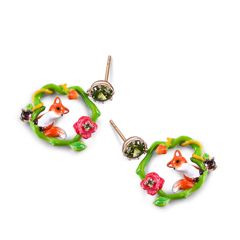 Jeulia "Love-in-Idleness" Fox with Flower Enamel Sterling Silver Earrings