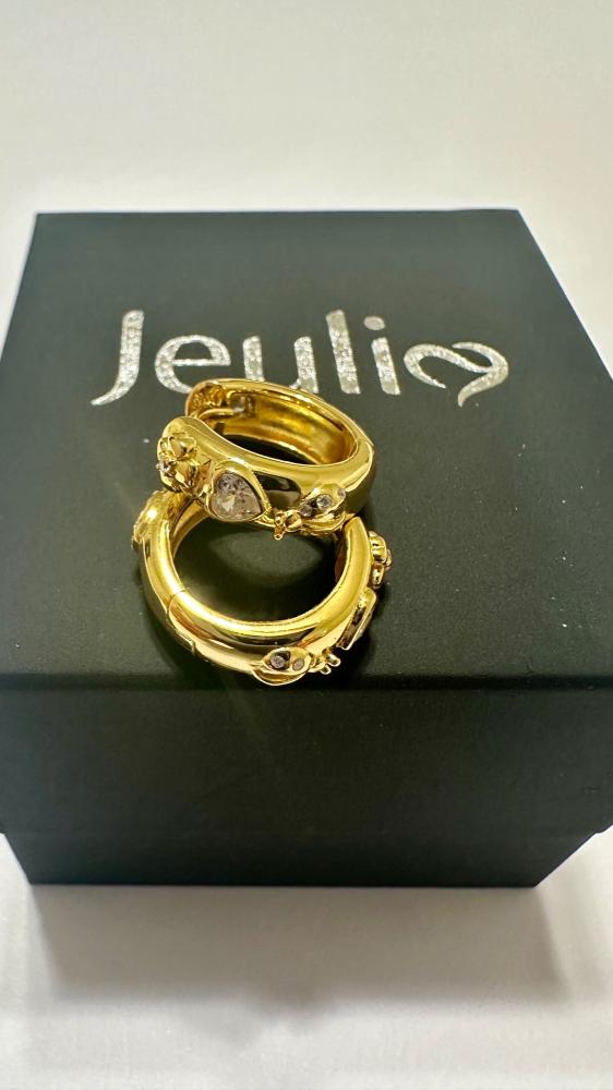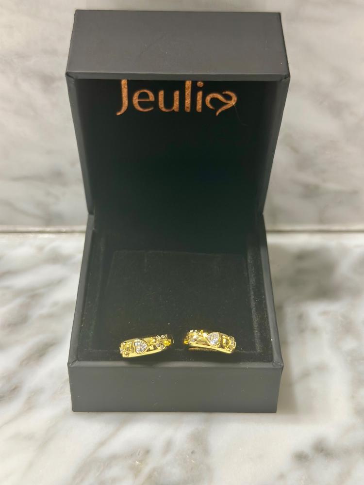 The Jeulia "Lucky and Love" Hoop Earrings are a stunning piece, crafted from high-quality sterling silver with a luxurious gold finish. Each earring features charming design elements, including a heart shape and sparkling stones that symbolize love and affection. Additionally, playful motifs like a ladybug add a touch of whimsy, representing luck and good fortune. These elegant huggie hoop earrings are perfect for enhancing any outfit, making them a thoughtful gift or a delightful addition to your jewelry collection.