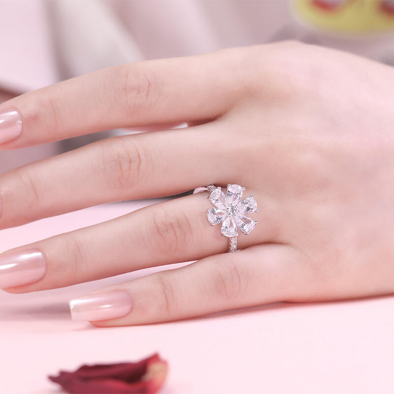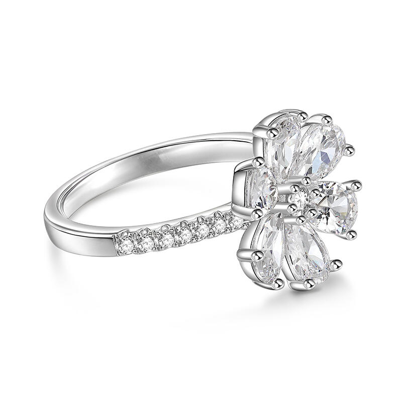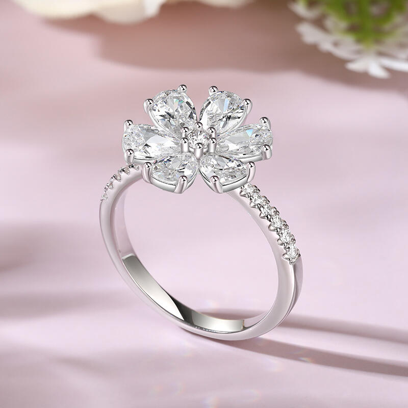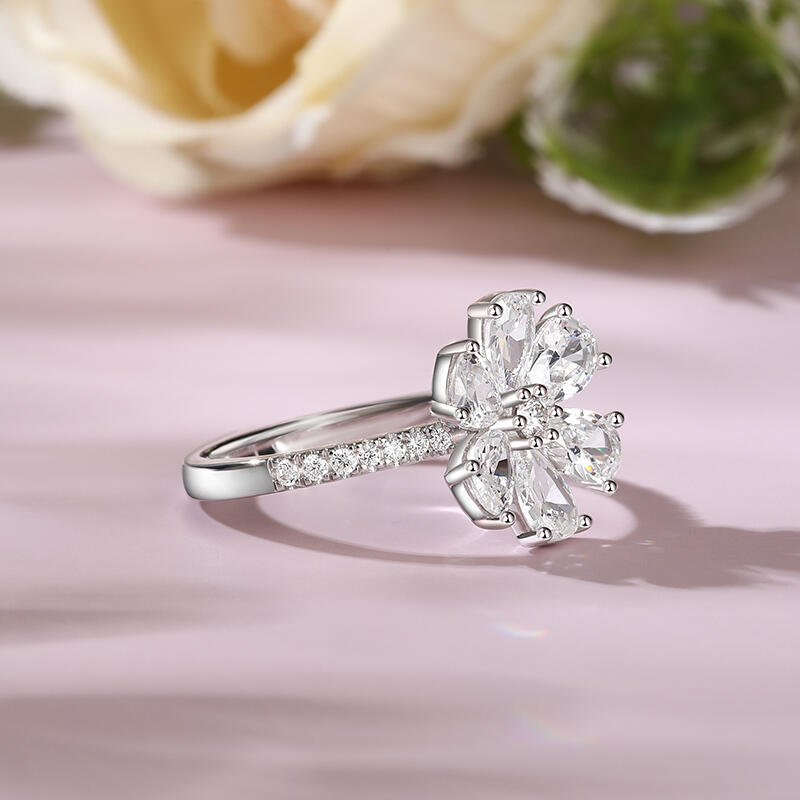 Jeulia "Lucky Petal" Pear Cut Six-Petal Flower Sterling Silver Ring