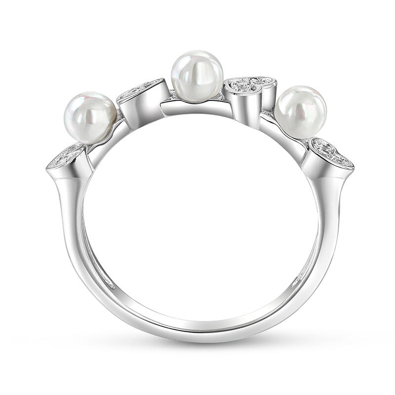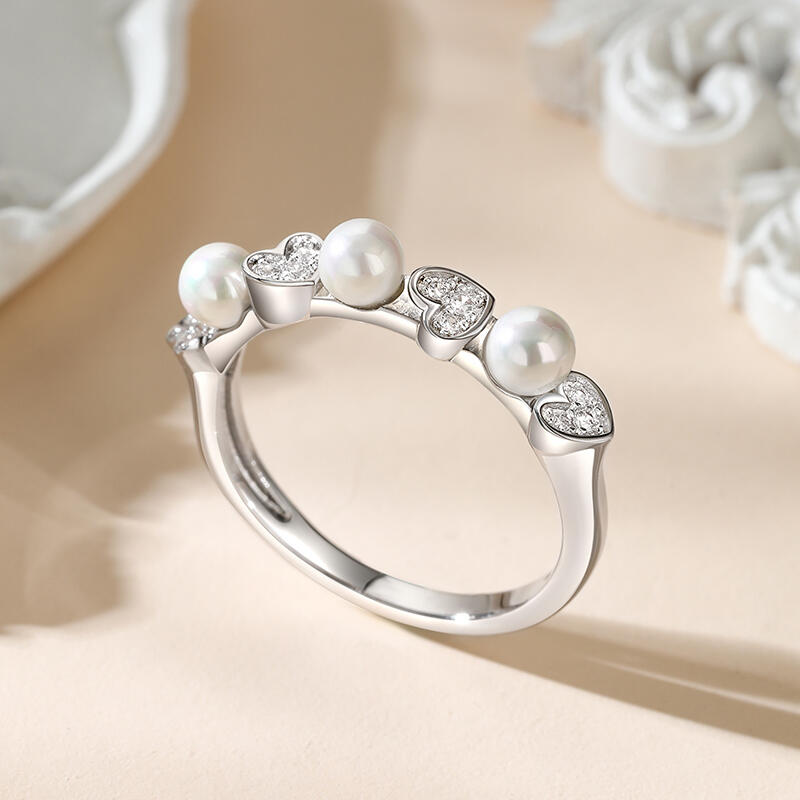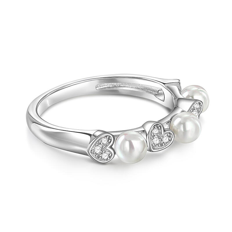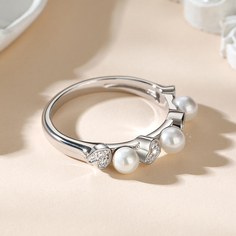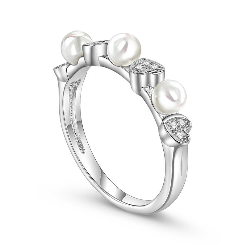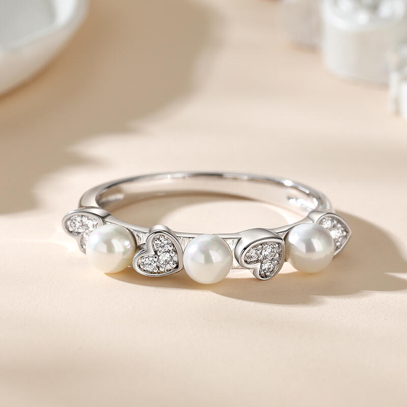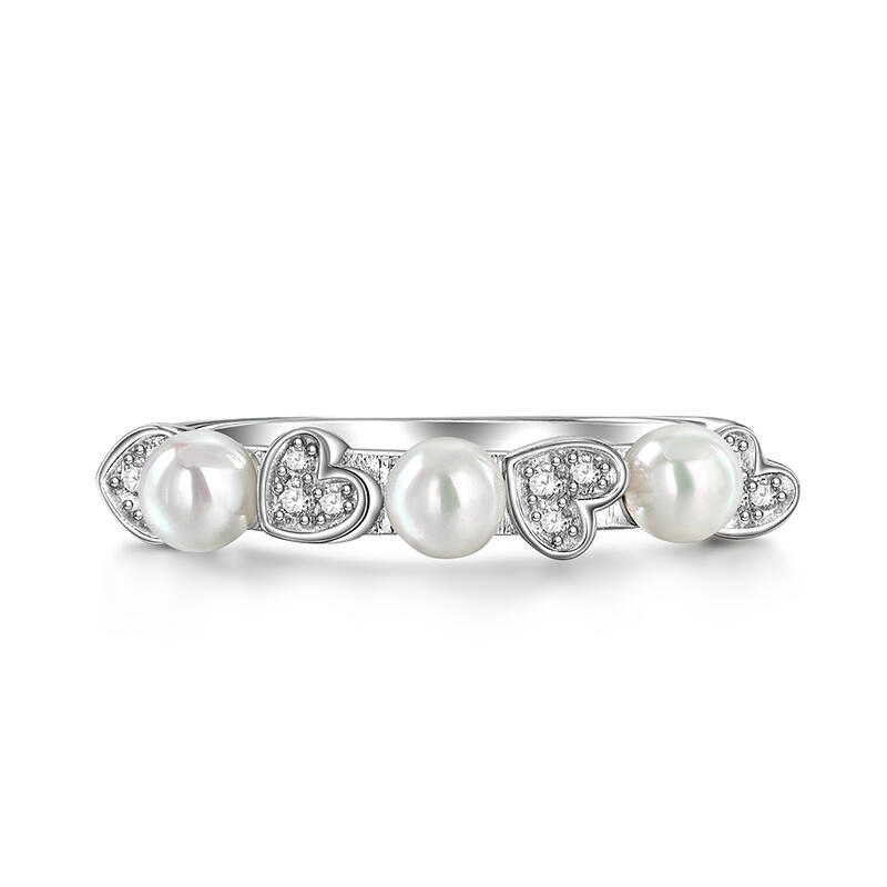 Jeulia "Rolling Heart" White Pearl Women Wedding Band Sterling Silver