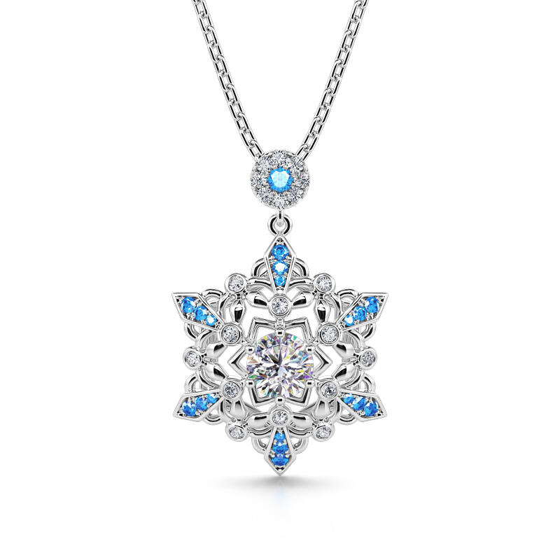 Calm, regal, and reserved, the mysterious beauty of this snowflake-inspired jewelry set will leave you in awe. This snowflake jewelry set captures the beauty and intricacy of a snowflake gently falling from the sky during winter snow. Its design is full of detailing, finished with sparkling blue sapphire stones to make it really shine on you. The glorious sparkle will turn heads and catch eyes.