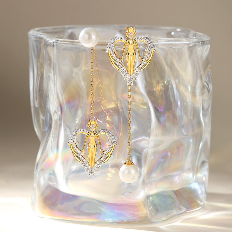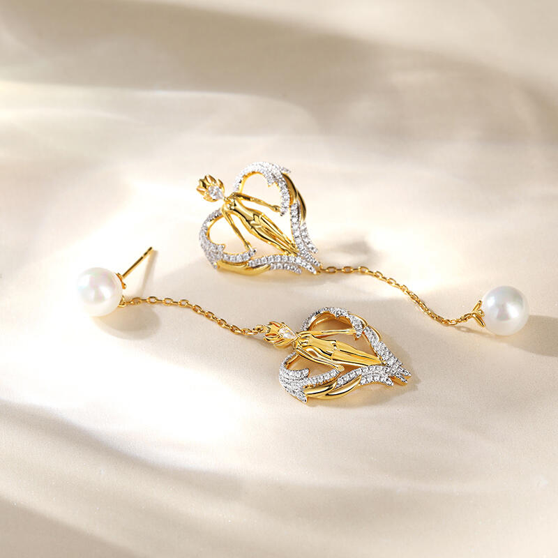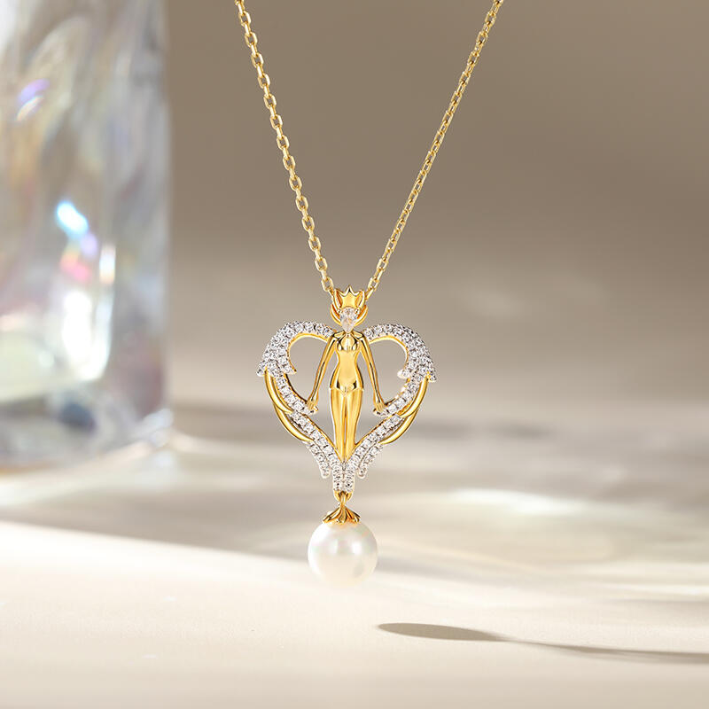 Embrace the delicate dance of love with our gold sterling silver jewelry. A symphony of pearls and angels, these jewels reflect the tender ebb and flow of love's eternal waltz. They bear witness to the beauty of souls intertwined by emotion.