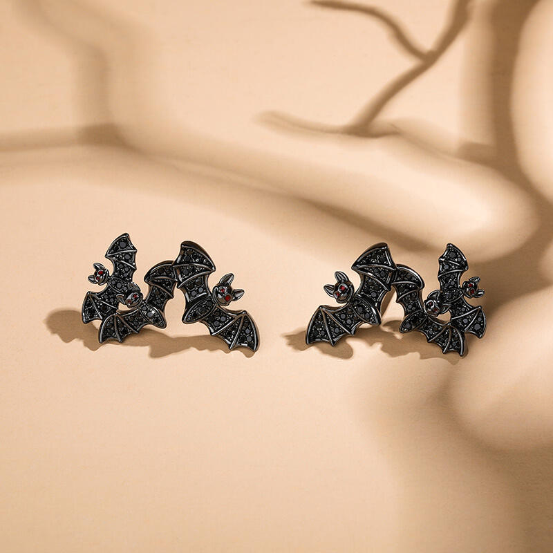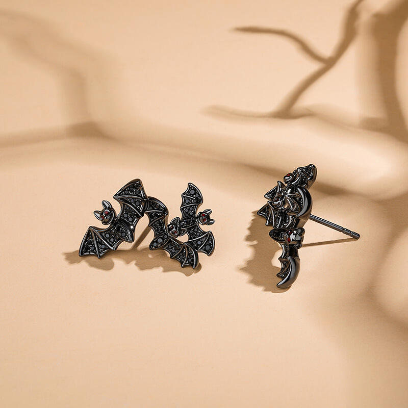 Bats symbolize death and rebirth, which have been associated with Halloween for hundreds of years. Made from sterling silver plated black and stones, very dazzling, unique particularly attractive, it is suitable to wear for Halloween to highlight your personality. The bat flying in the dark symbolizes the wisdom and luck. This set is a special gift to her and as Halloween jewelry and vampire bat jewelry wearing on Halloween and any party.