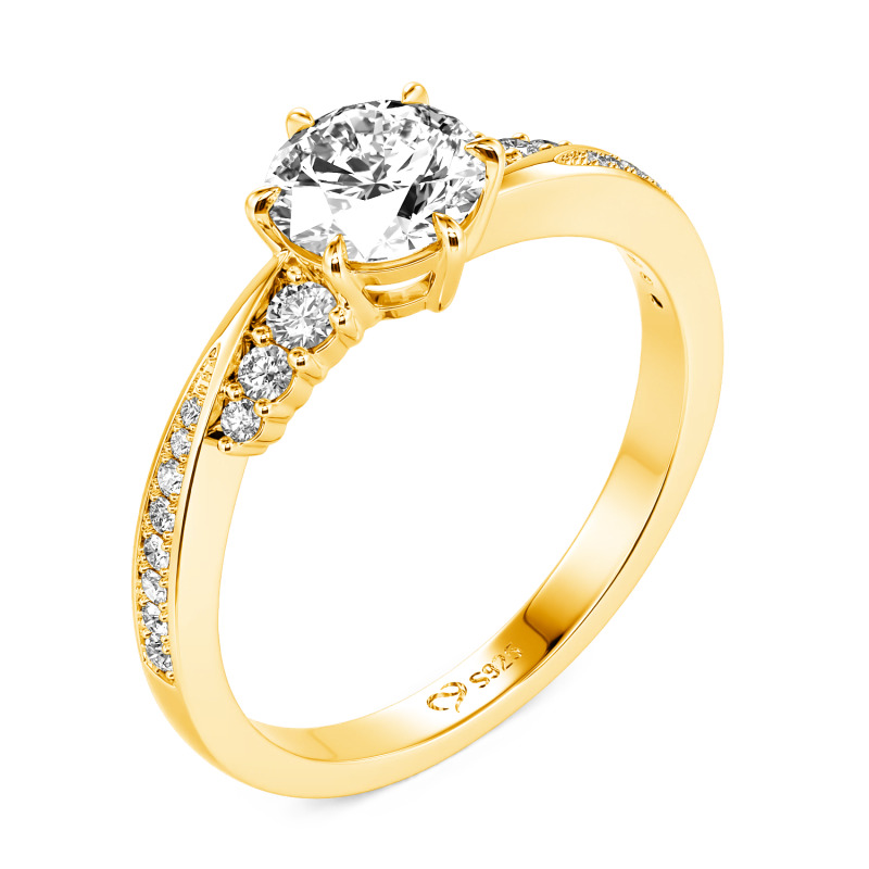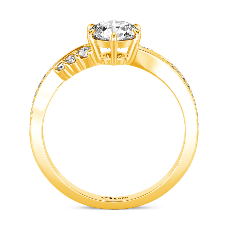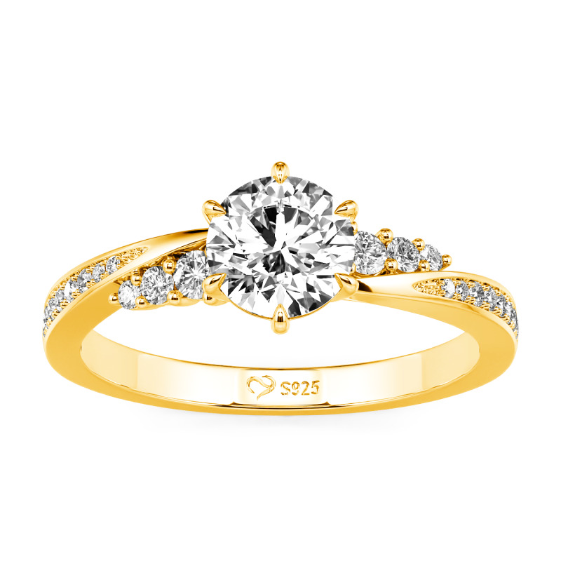 This Jeulia round-cut intertwined design promise ring is meticulously crafted in 10K/14K/18K gold or platinum, interpreting sincere vows through a minimalist round stone and fluid lines. The round center stone is set in a classic six-prong setting, radiating a clear and luminous brilliance. The band features a double-twisted pattern that creates a beauty of diagonal symmetry, while the sequentially arranged accent stones encircle the center stone like a star trail, forming a visual rhythm of “protection and growth.” The design embodies the delicate warmth of artisanal craftsmanship while harnessing the innate luster of precious metals, allowing this simple promise ring to radiate enduring elegance in everyday wear.