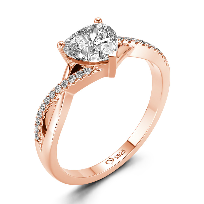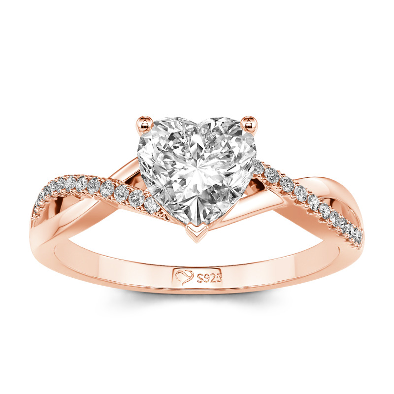 Jeulia 10K/14K/18K Gold Platinum Twist Heart Cut Ring