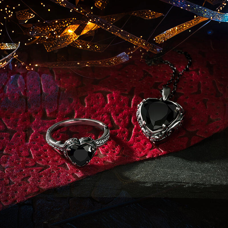 The Jeulia Aged Finish Black Heart Necklace is a striking piece that blends elegance with a hint of gothic allure. Made from sterling silver, this gothic necklace features a beautifully faceted black heart stone, which adds a touch of mystery and sophistication. The pendant is intricately designed with aged finishes and detailed engravings, enhancing its unique character. This black necklace is perfect for those who appreciate bold jewelry with a whimsical twist, making it ideal for both special occasions and everyday wear. Whether you're looking to make a statement or searching for a thoughtful gift, the Jeulia Aged Finish Black Heart Necklace is a stunning accessory that embodies the beauty of individuality and charm.