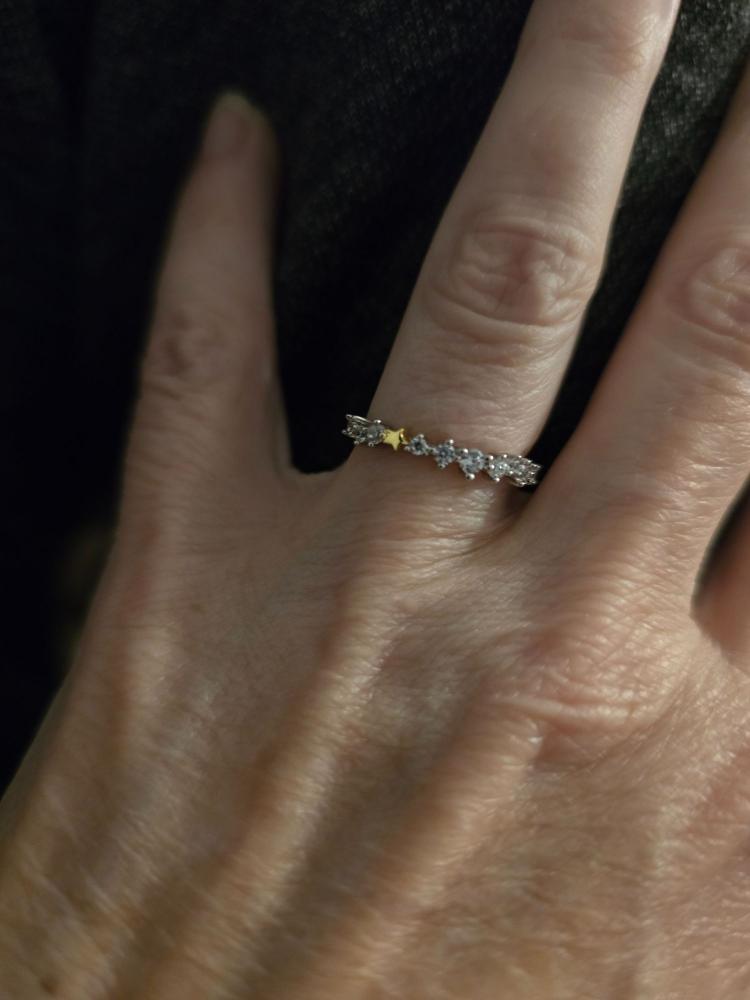 Like your love, this band is a classic that never goes out of style. A star and stunning prong-set stones in a sculptural alternating pattern appear to float above the finger for an effortless, unique look. Its simple style is fit for every lady. You can wear it separately or stack it with other rings. Treat yourself with this piece.