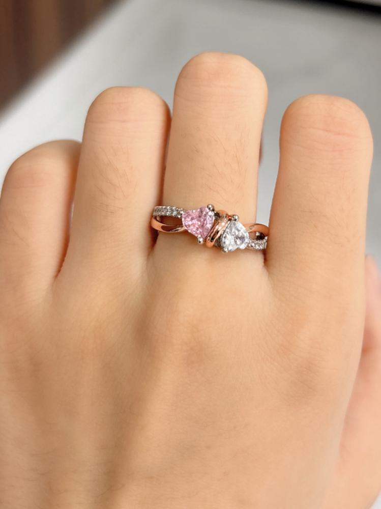 Celebrate your one - of - a - kind love with the Jeulia Amore custom heart shaped engagement ring. At its core, two heart - cut gems—are intertwined by a ribbon - inspired two - tone band, blending silver and rose gold for a look that’s as unique as your bond. The custom - friendly design lets you personalize details, ensuring this heart ring tells your love story. Sparkling stones catch the light with every move, while the fluid ribbon shape mirrors the gentle, lasting embrace of true love. Perfect for engagements or milestone moments, this two tone ring is crafted with premium materials to shine as long as your devotion.