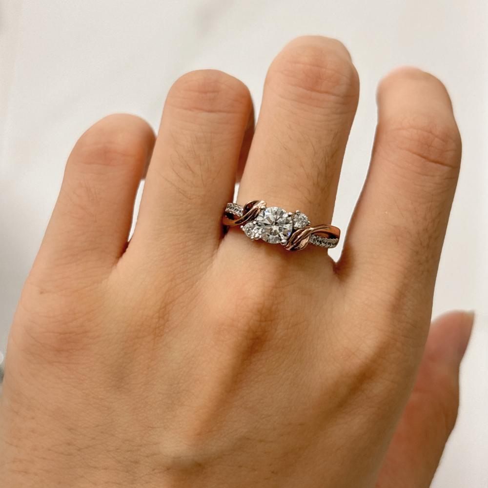 Jeulia Amore Twisted Leaf Custom Three Stone Engagement Ring