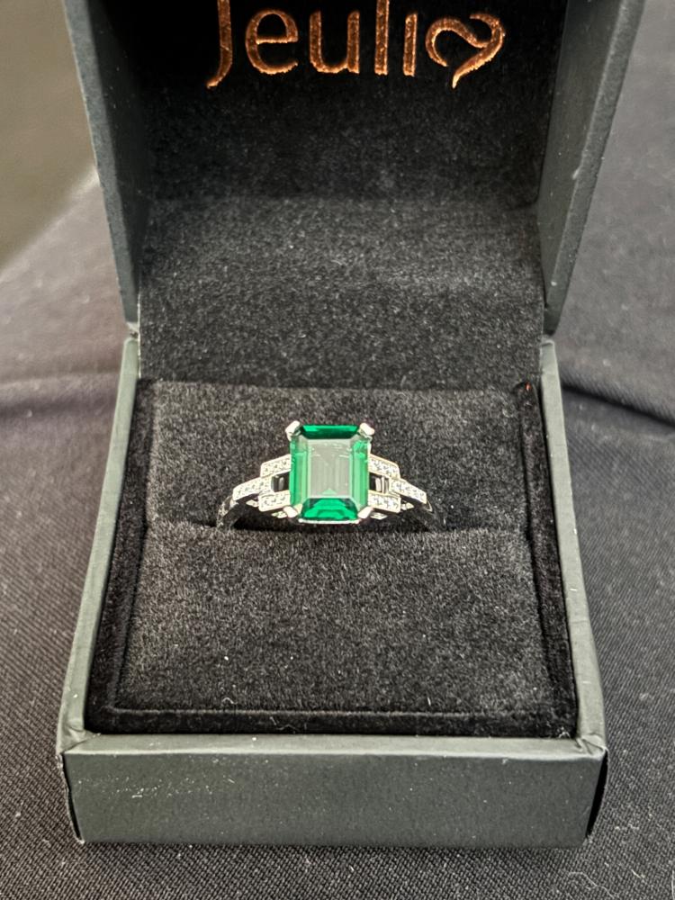 Jeulia Art Deco Emerald Cut Sterling Silver Ring