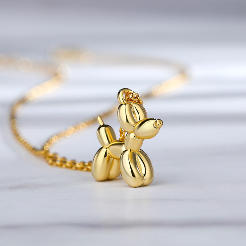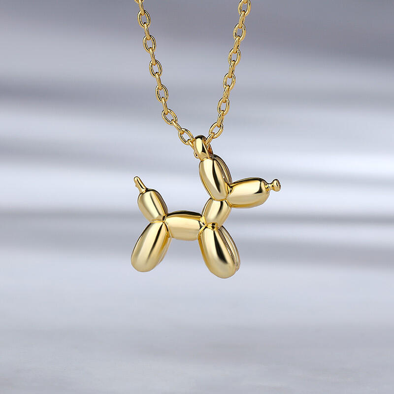 Add some fun to your everyday style with this balloon dog inspired necklace. Crafted in sterling silver, it features a funny yellow gold tone balloon dog, which is designed to be so lovely and super-cute. If you want the best friend of human to be always by your side, pick this necklace immediately.