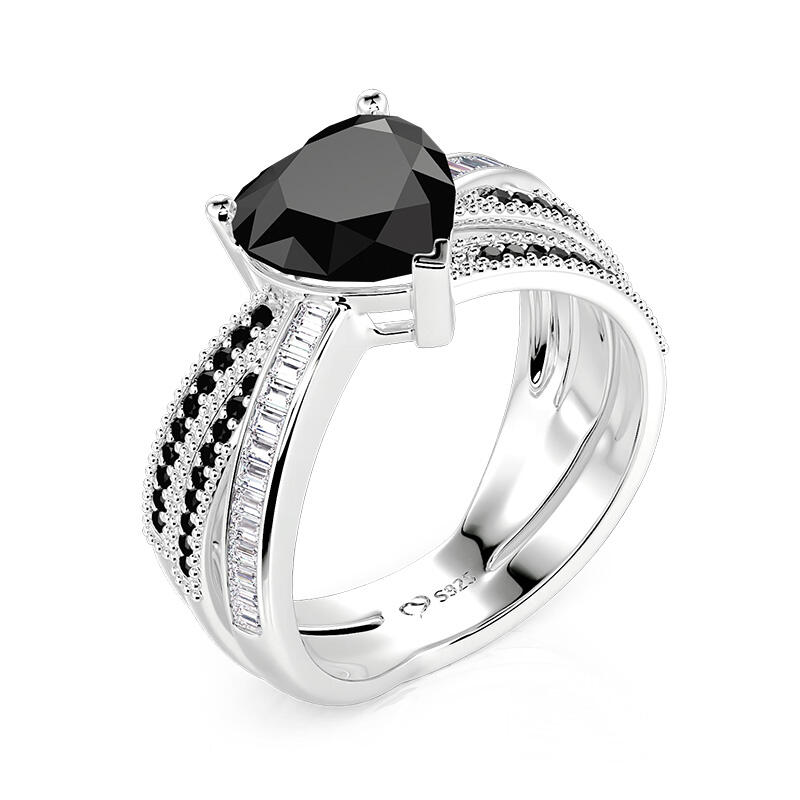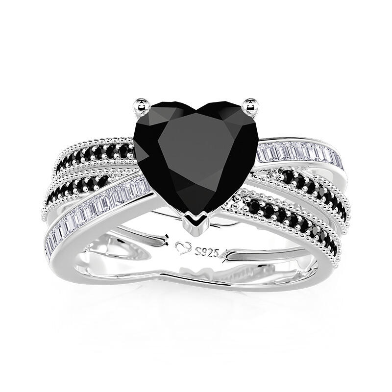Embrace romantic allure with the Jeulia black and white heart crossover ring. At its core, a striking black heart - cut stone takes center stage. Surrounding it, the heart ring features a chic crossover design adorned with black and white stones, plus a row of square - cut stones that add extra sparkle. Crafted from sterling silver, this heart ring blends bold contrast with delicate detailing, making it a perfect choice for those who love unique, heartfelt jewelry. Whether for a special occasion or daily wear, this crossover ring effortlessly combines elegance and charm.