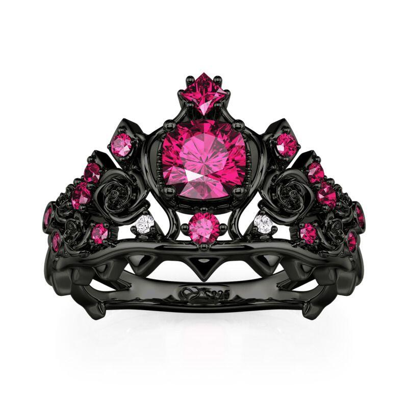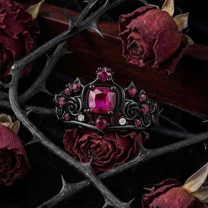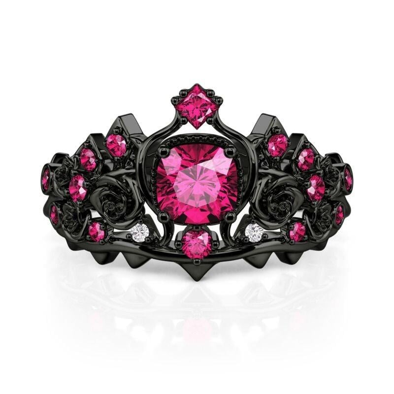 Jeulia Black Crown Dark Rose Queen Cushion Cut Fashion Ring