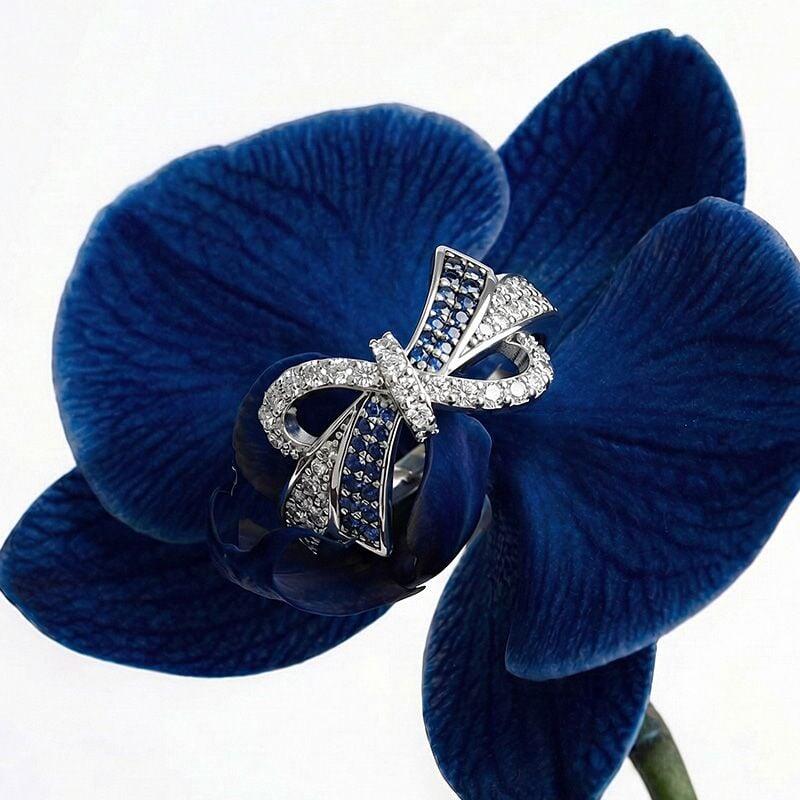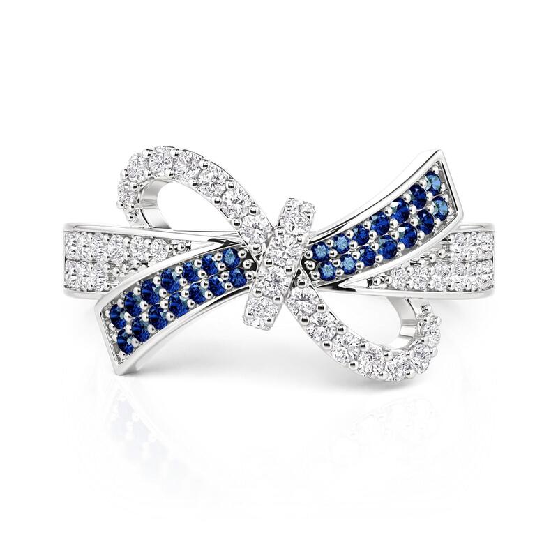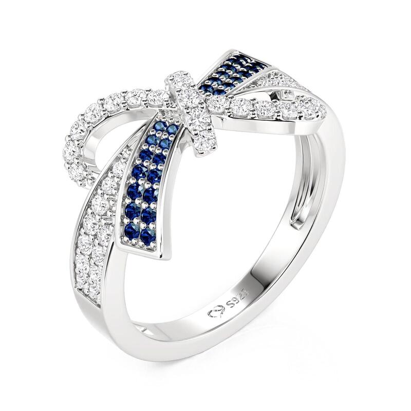 Jeulia Blue Pave Bow Knot Ring Sterling Silver