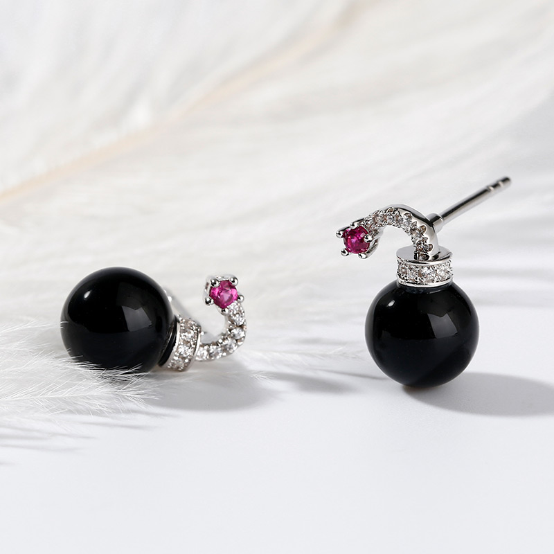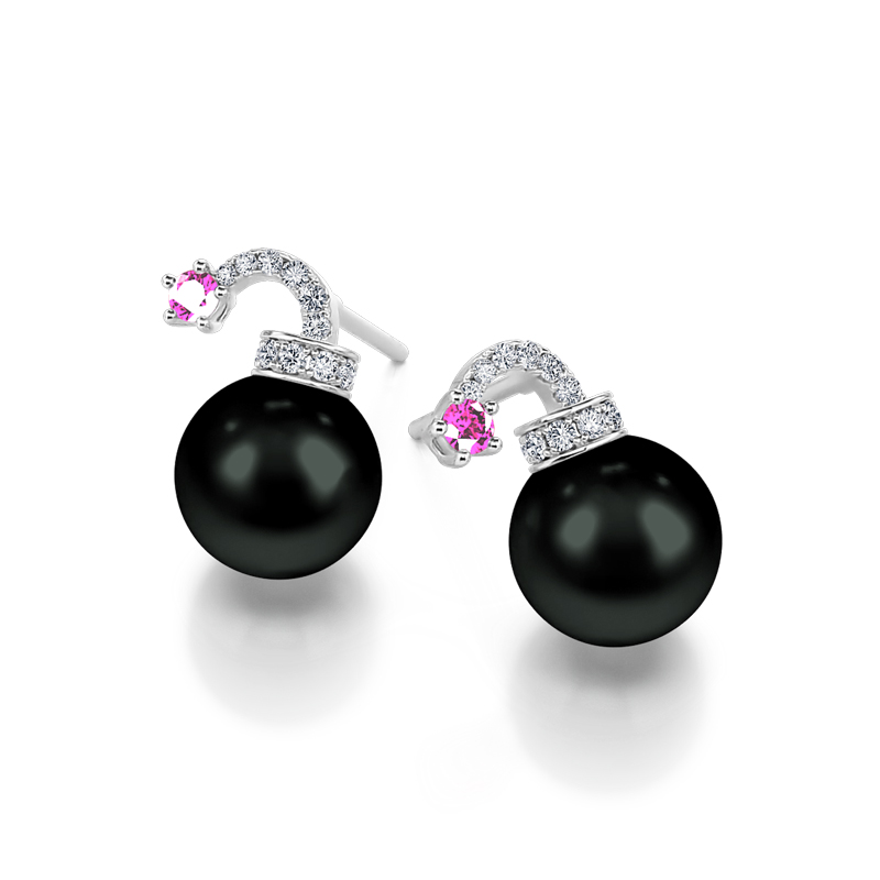 Jeulia Bomb Design Cultured Black Pearl Sterling Silver Earrings