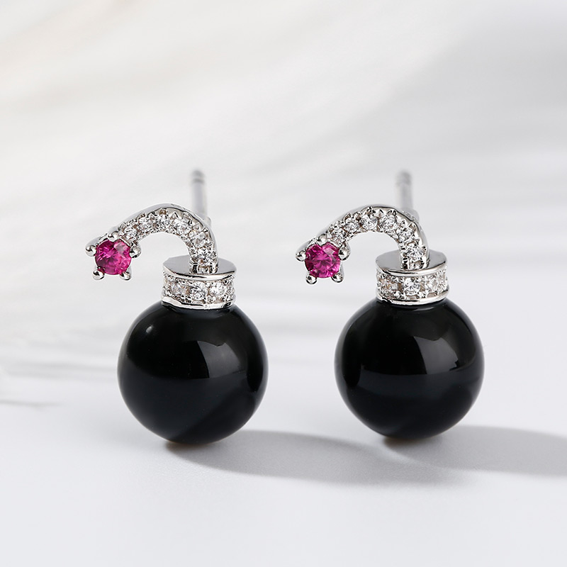 Cool and fun miniature bomb earrings will put a smile on your face. Crafted in sterling silver, each earring features a bomb which is decorated with one cultured black pearl and scattered with shimmering stones, creating a fresh and funny look. Treat yourself or surprise her with this masterpiece. Simple and stunning, it's certain to become a treasured favorite.