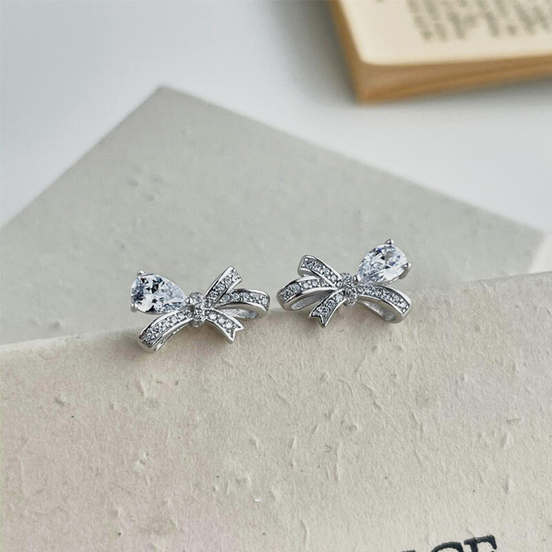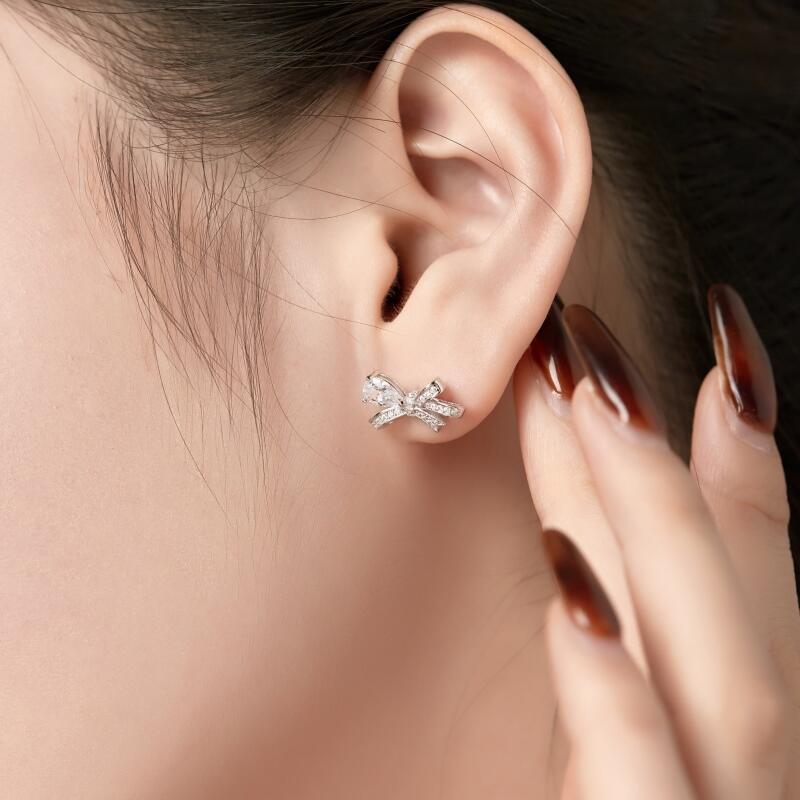 Jeulia Bowknot Design Pear Cut Sterling Silver Stud Earrings