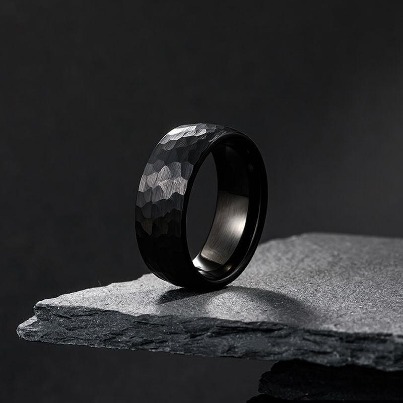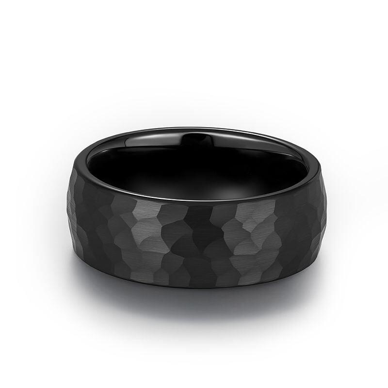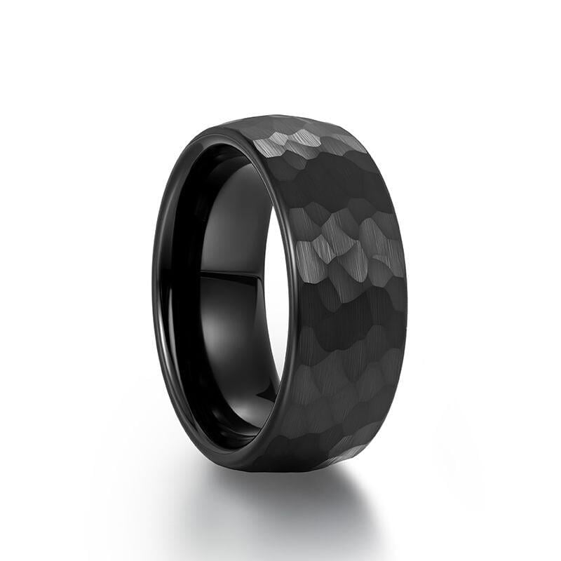 Jeulia Brushed Black Hammered Tungsten Ring for Men