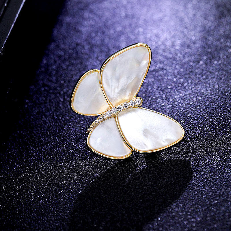 Jeulia Butterfly Copper Mother of Pearl Brooch