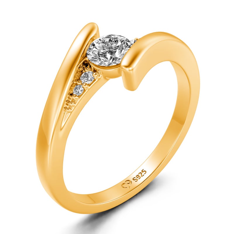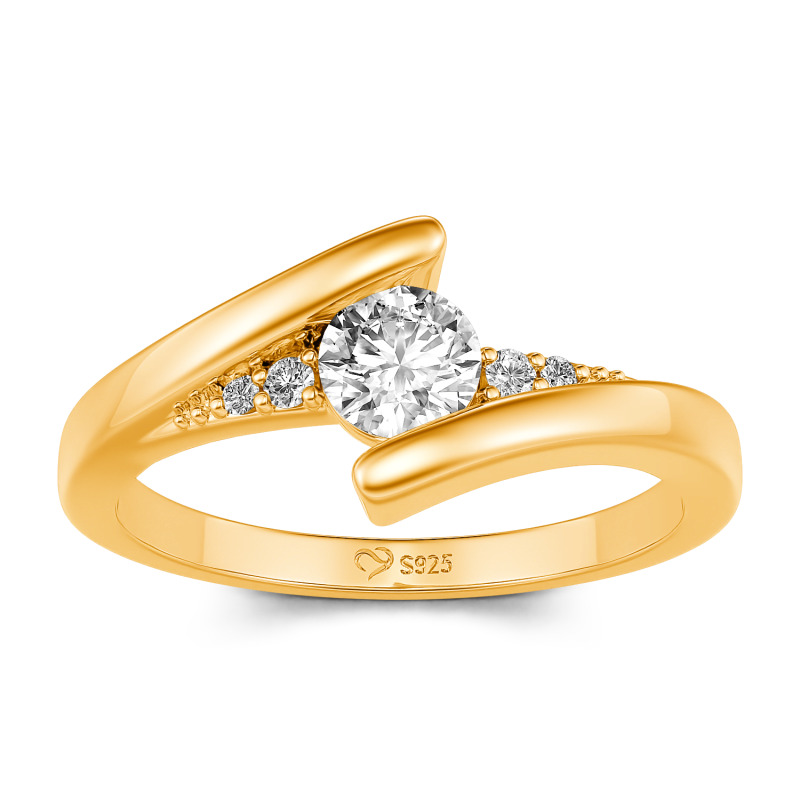 Jeulia Bypass Design Round Cut Women Engagement Ring Sterling Silver